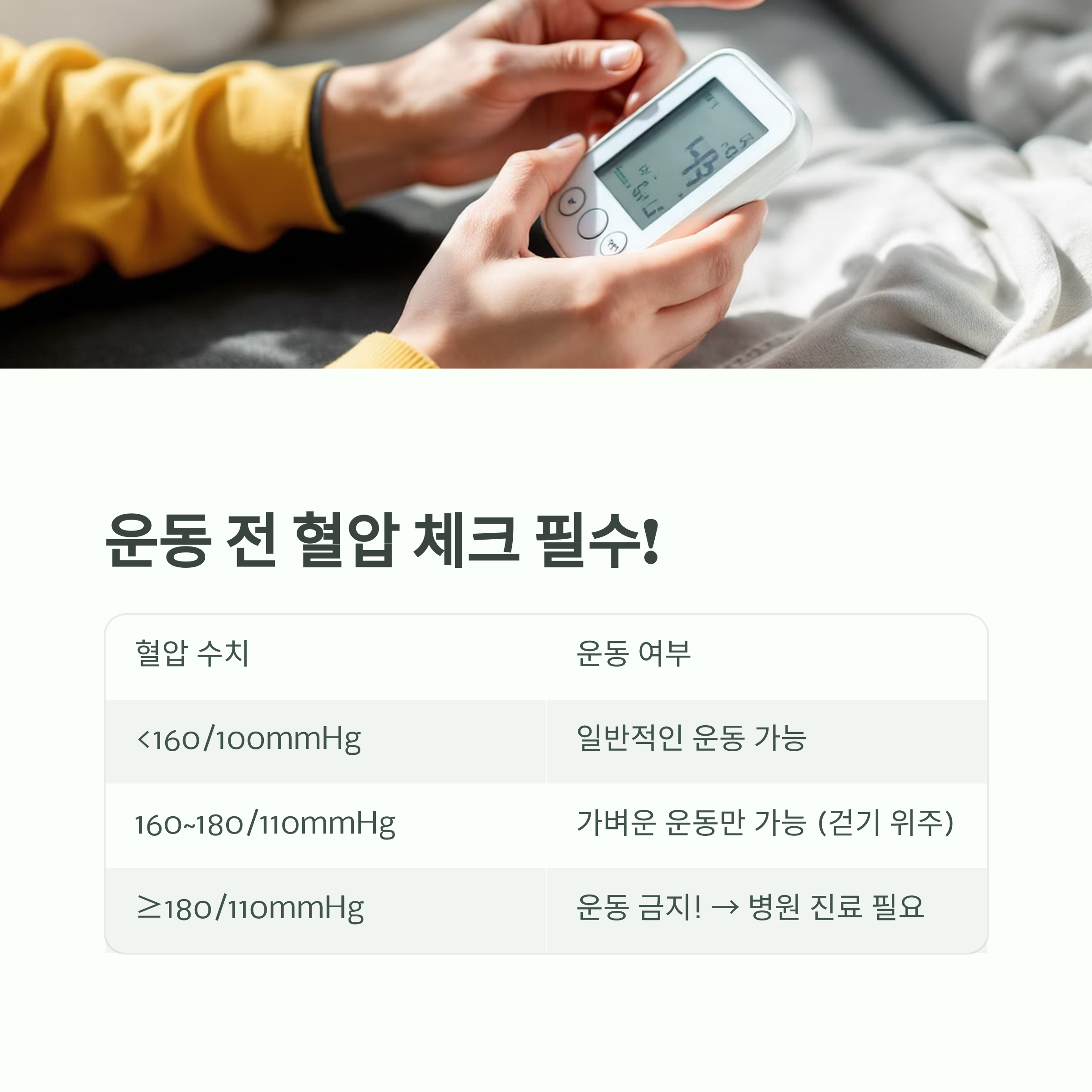 운동을 시작하기 전, 반드시 혈압 상태 점검이 우선입니다.
