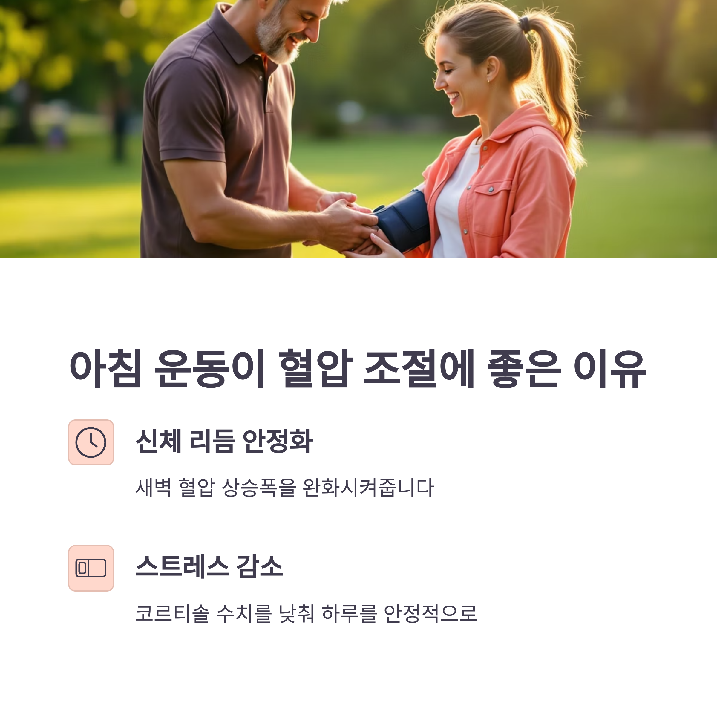 "아침 운동은 단순한 활동이 아니라, 하루 혈압을 다스리는 열쇠입니다."