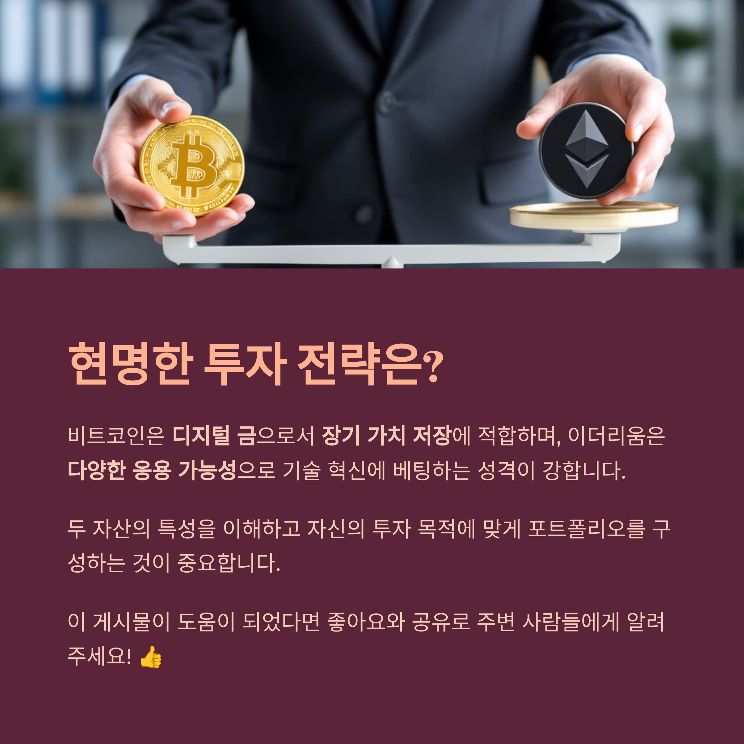 비트코인과 이더리움은 암호화폐 시장에서 가장 대표적인 두 자산입니다. 하지만 두 코인은 근본적인 목적과 기술적 구조에서 차이가 있으며, 각각의 장점과 단점이 존재합니다. 비트코인은 디지털 금으로 불리며, 가치 저장 수단과 결제 시스템으로 주로 사용됩니다. 반면, 이더리움은 스마트 컨트랙트 기능을 기반으로 다양한 애플리케이션을 실행할 수 있도록 설계되었습니다. 이번 글에서는 비트코인과 이더리움의 주요 차이점과 비트코인의 장점과 단점을 자세히 살펴보겠습니다.
