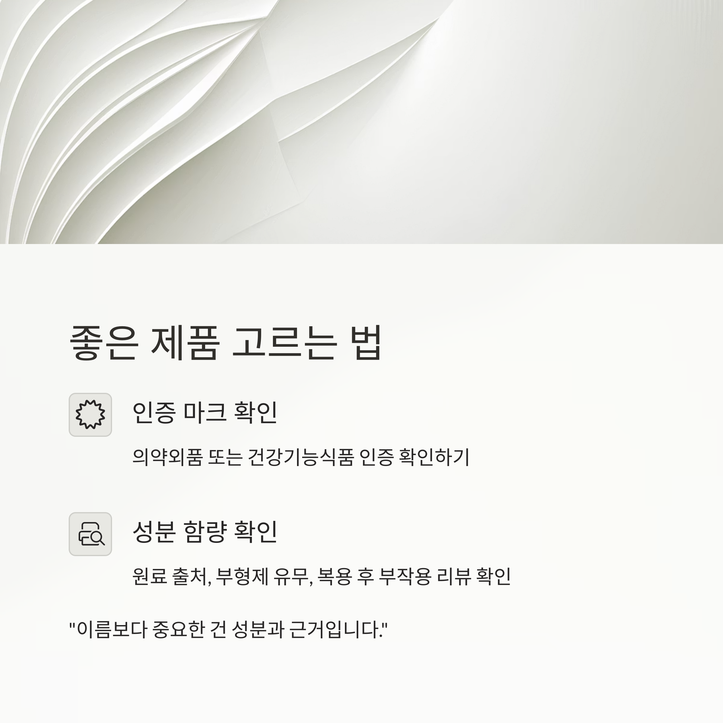 - 원료 출처, 부형제 유무, 복용 후 부작용 리뷰 확인