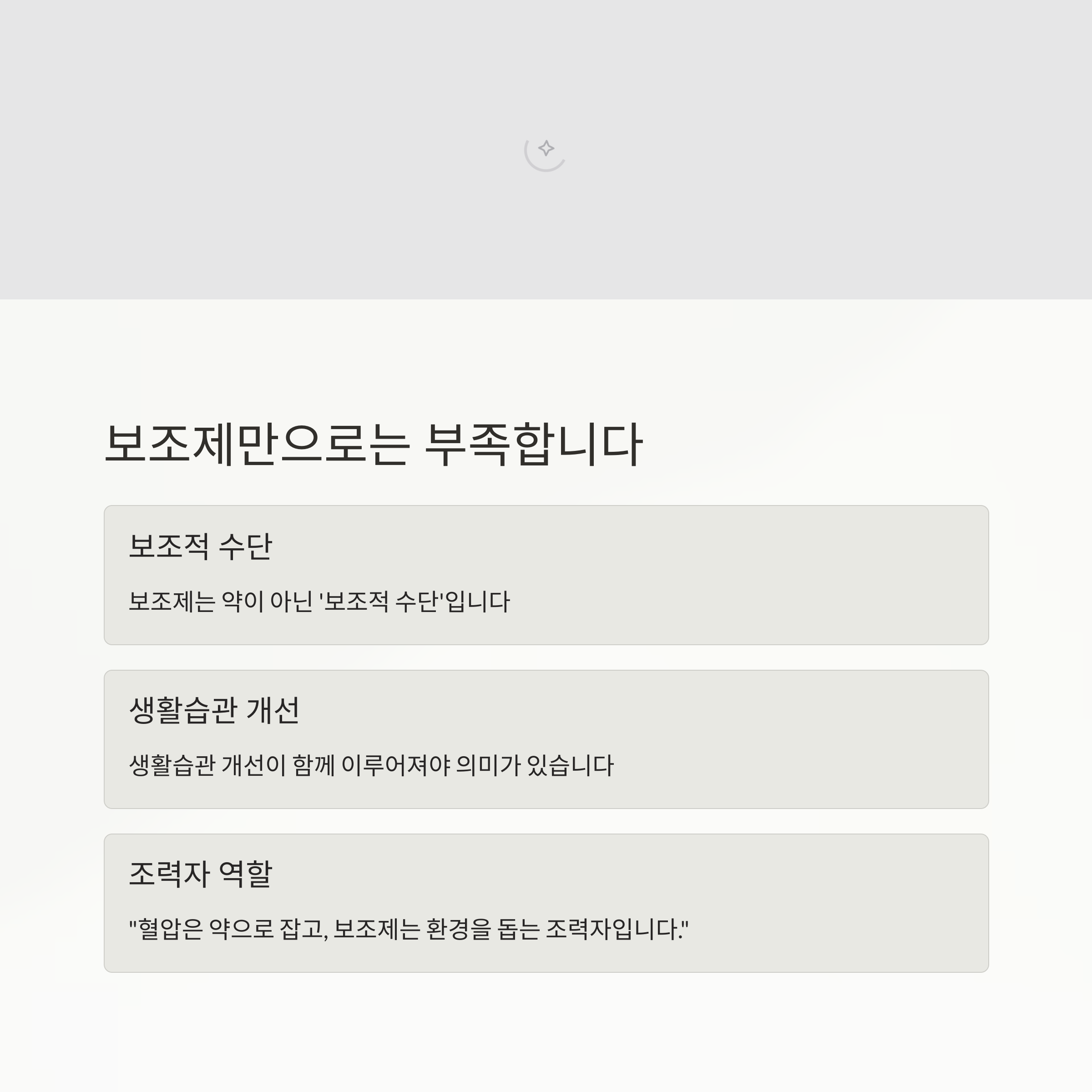 “혈압은 약으로 잡고, 보조제는 환경을 돕는 조력자입니다.”
