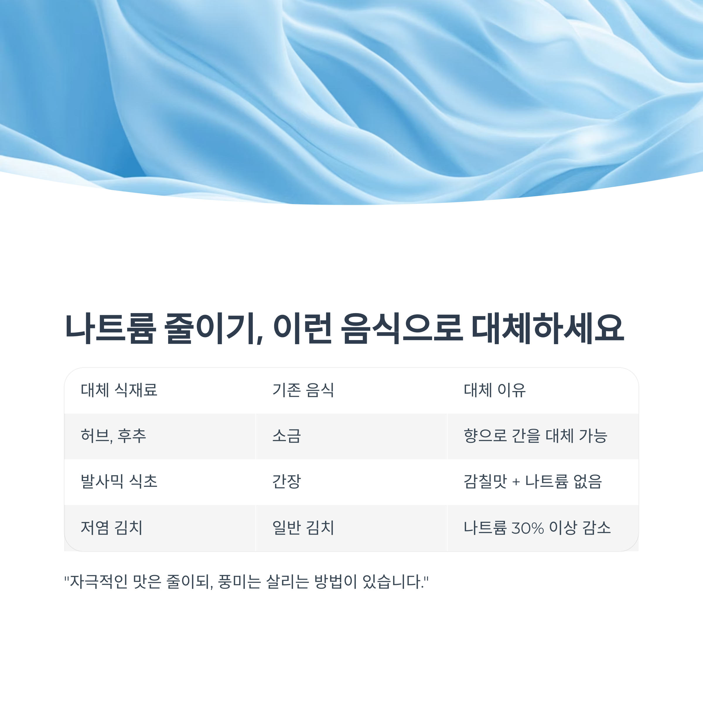 “짠맛은 혀가 아니라 혈관이 먼저 기억합니다.”