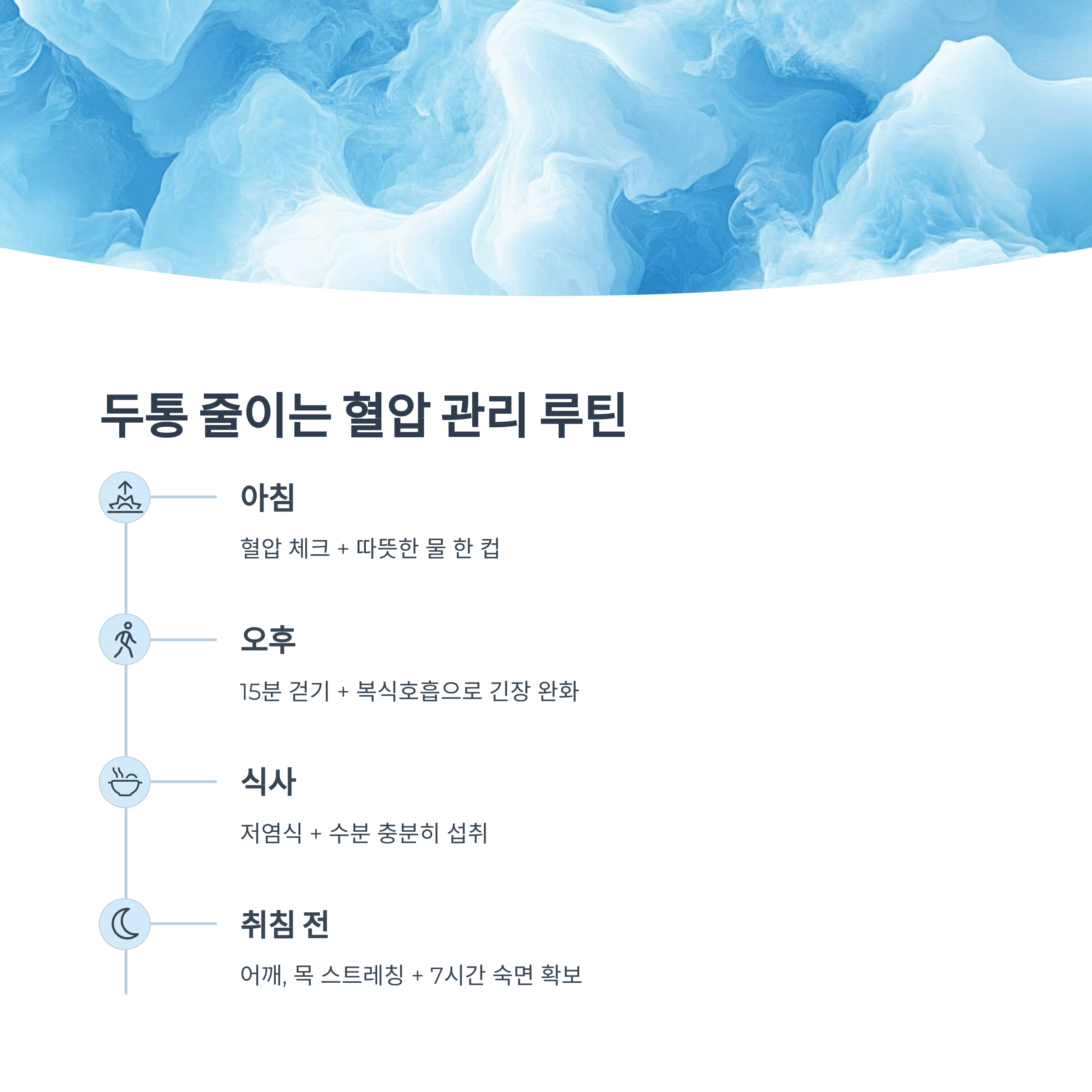 | 약 복용 불규칙 | 혈압 변동성 ↑ → 두통 발생 가능성 ↑ |