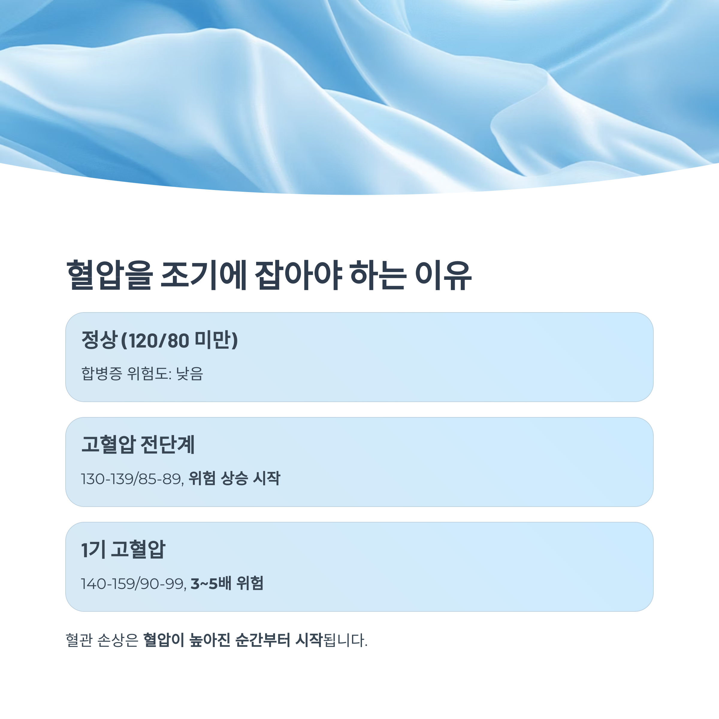 - 그러나 혈관 손상은 이미 혈압이 높아진 순간부터 시작