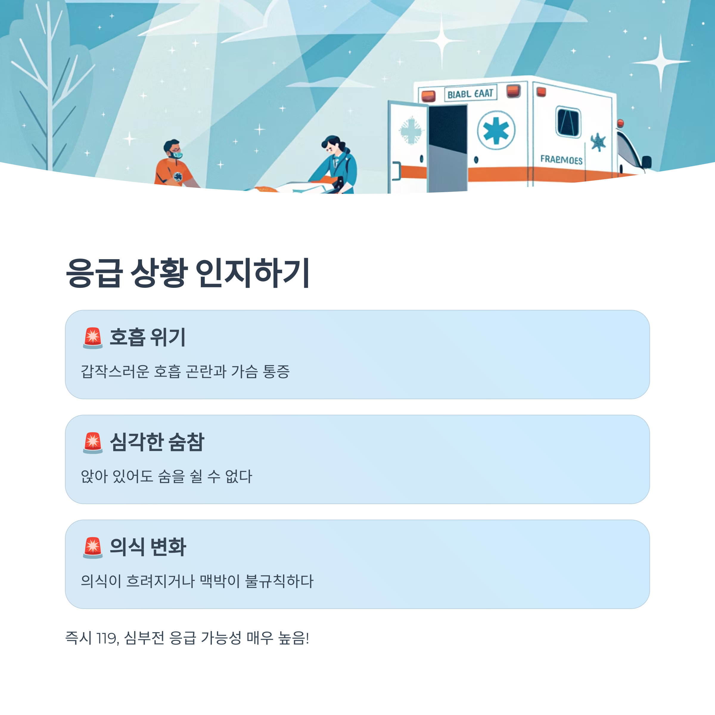 → 즉시 119, 심부전 응급 가능성 매우 높음!