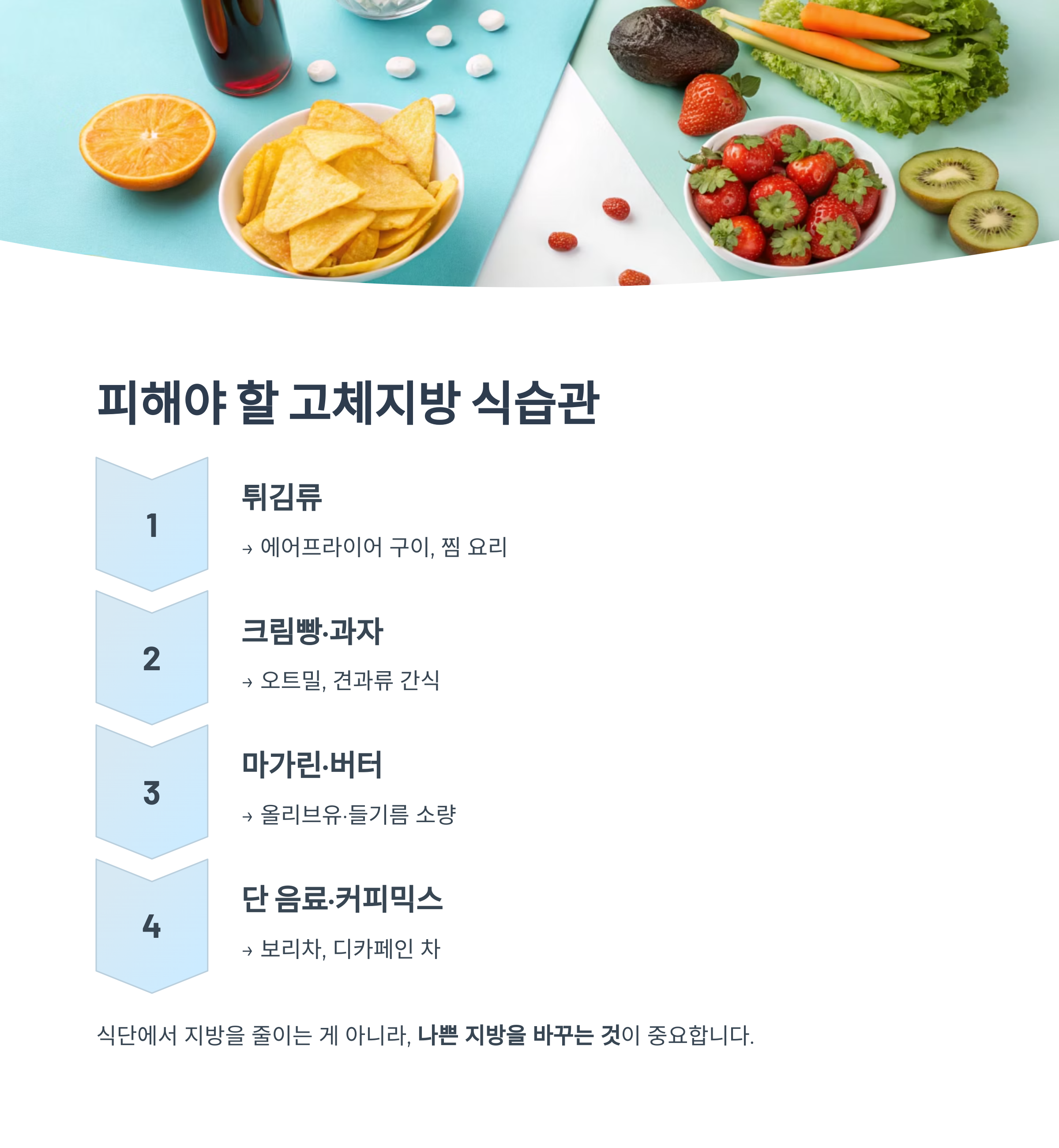 “식단에서 지방을 줄이는 게 아니라, 나쁜 지방을 바꾸는 것이 중요합니다.”