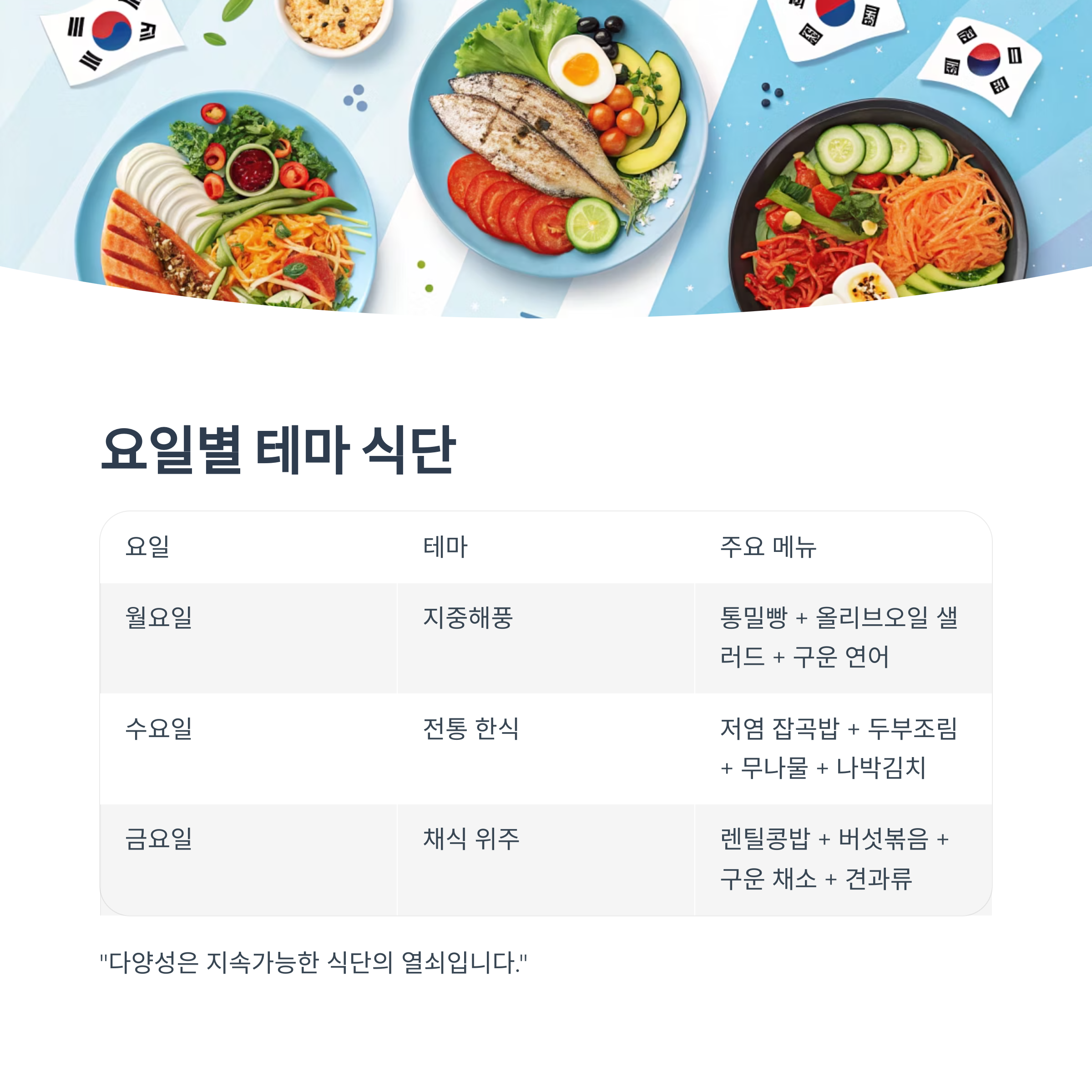 3. 요일별 테마 식단 샘플 (3일 구성)