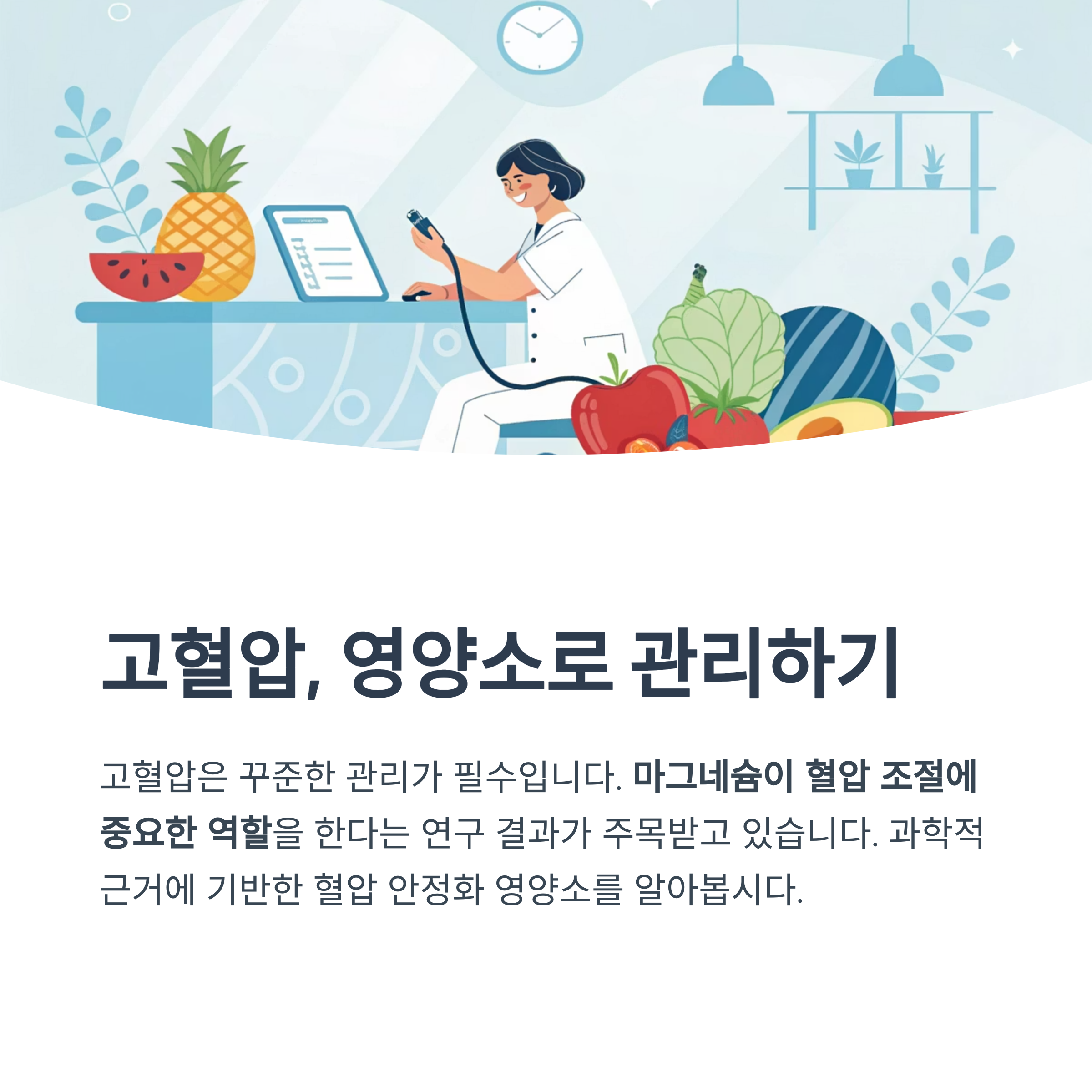 이 글에서는 마그네슘의 작용 원리부터 혈압 안정화에 효과적인 다양한 영양소까지