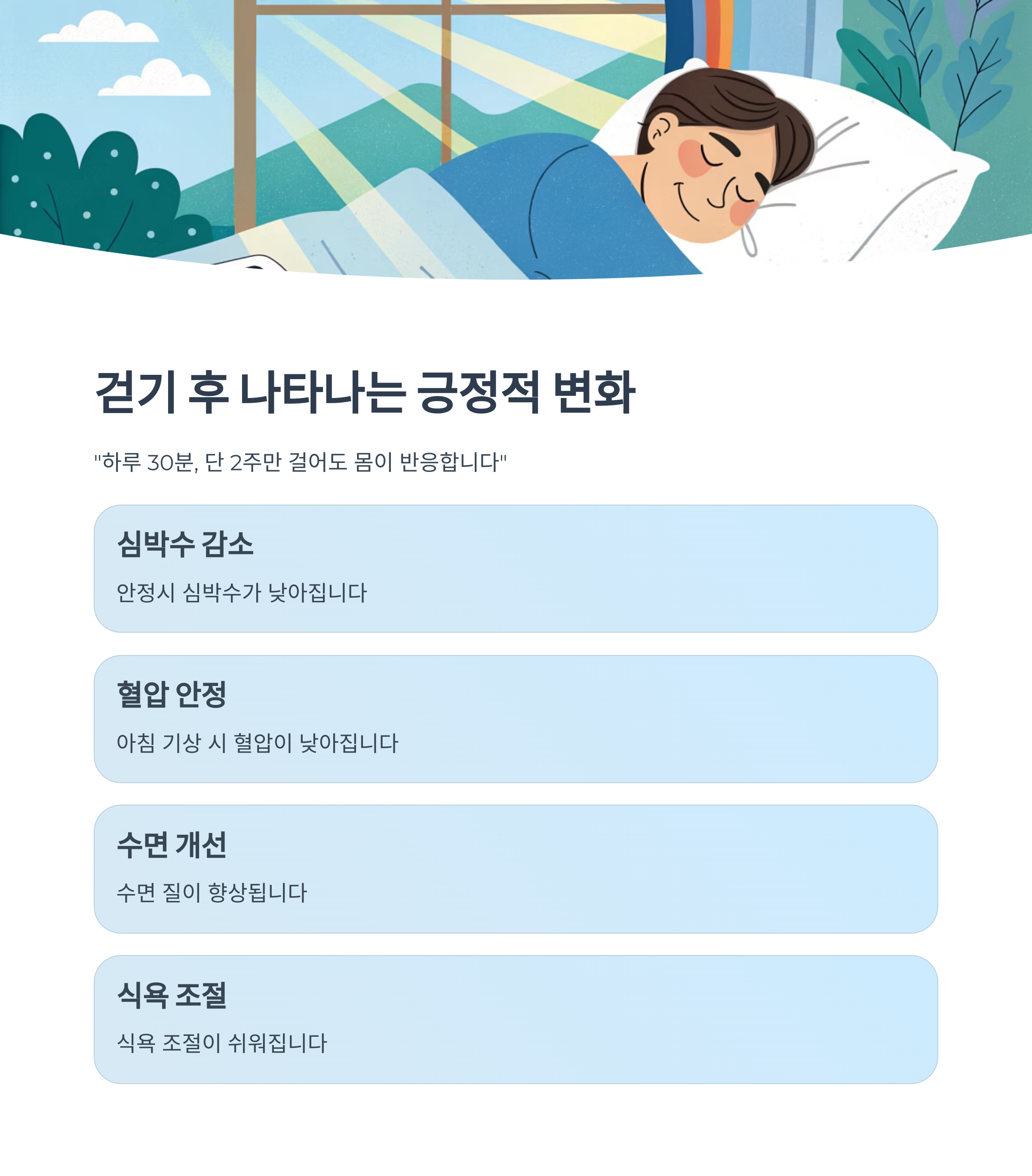 "하루 30분, 단 2주만 걸어도 몸이 반응합니다"