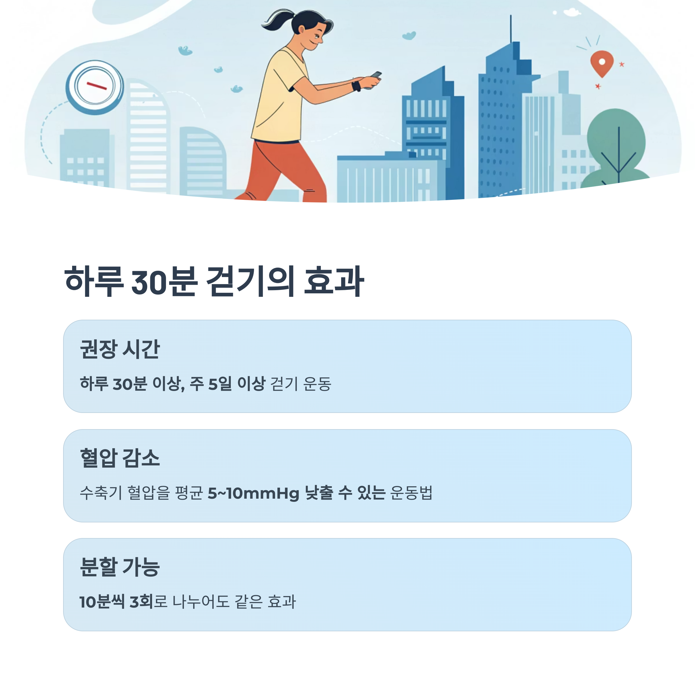 | 식후 30분 뒤 걷기 | 혈당·혈압 동시 관리 |
