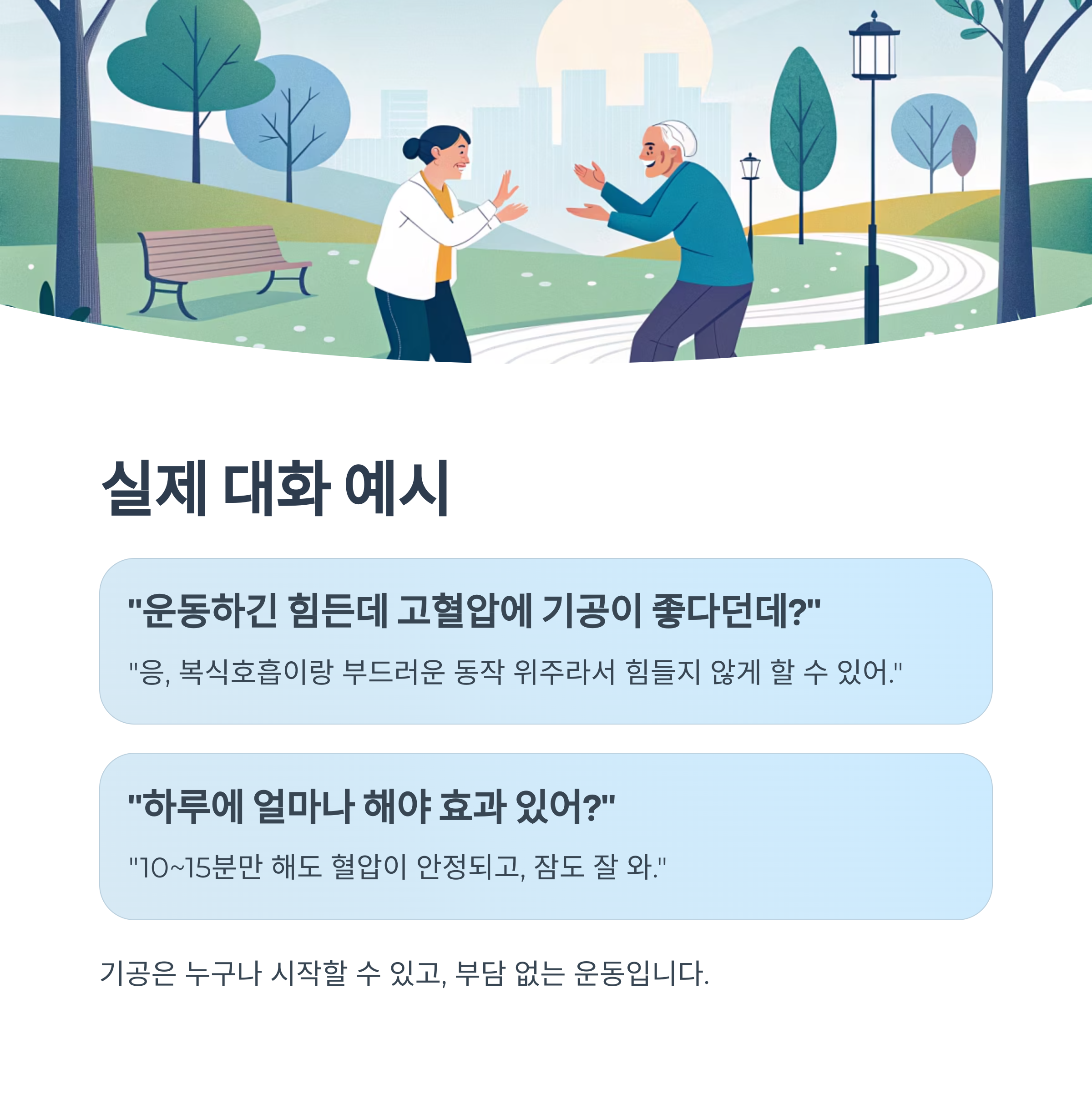 대화 예시: “기공이 정말 혈압에 좋아?”