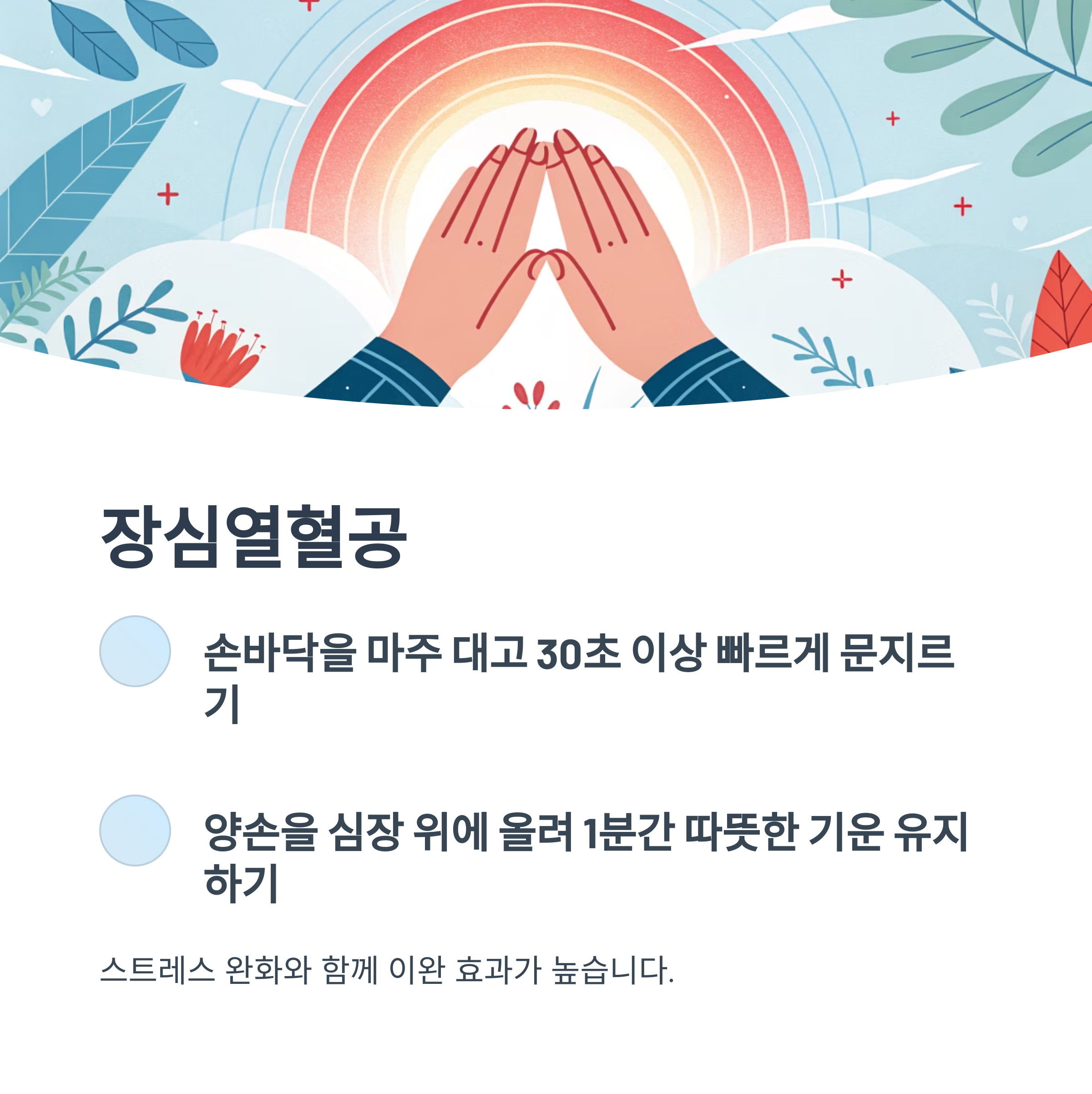 - 양손을 심장 위에 올려 1분간 따뜻한 기운 유지하기