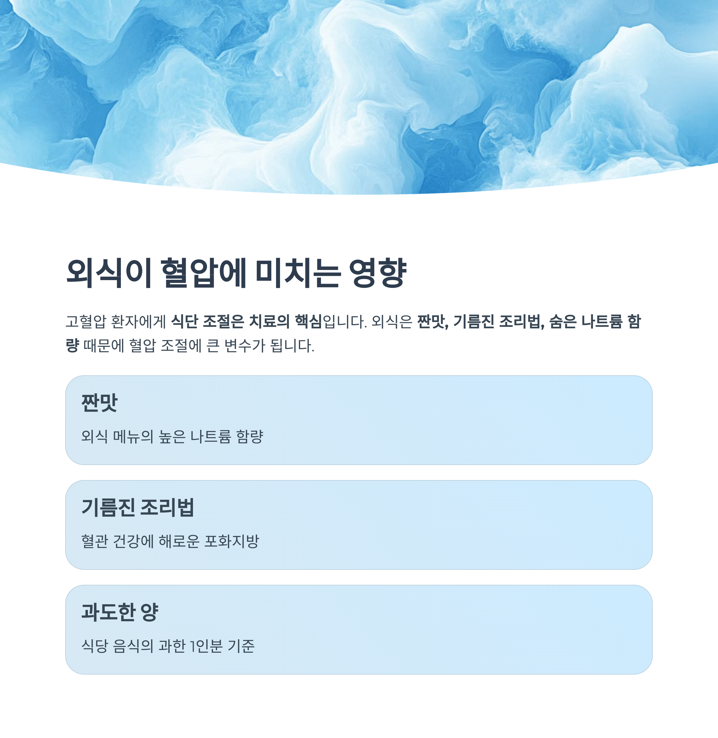 | 과도한 나트륨 섭취 | 양념·국물·간장 등 숨은 소금 함량이 매우 높음 |
