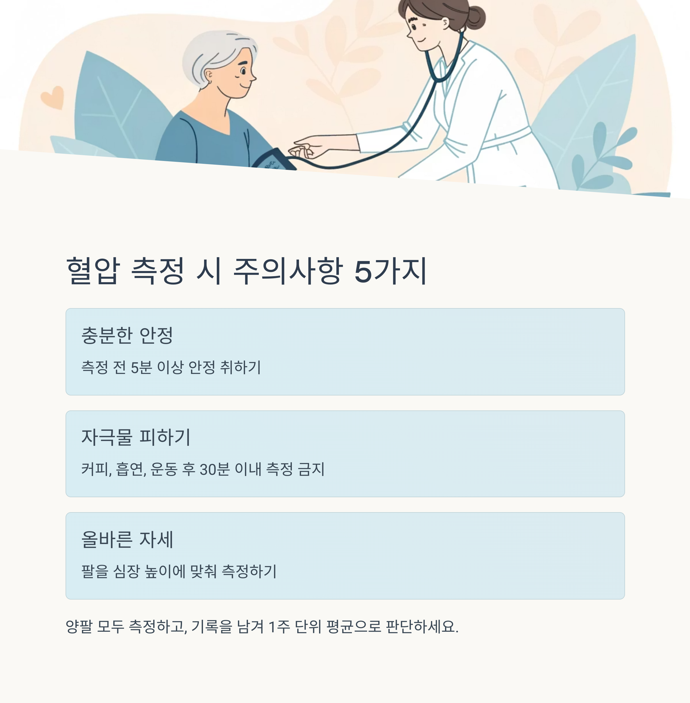 - 양팔 모두 측정하고, 높은 수치를 기준으로 합니다.