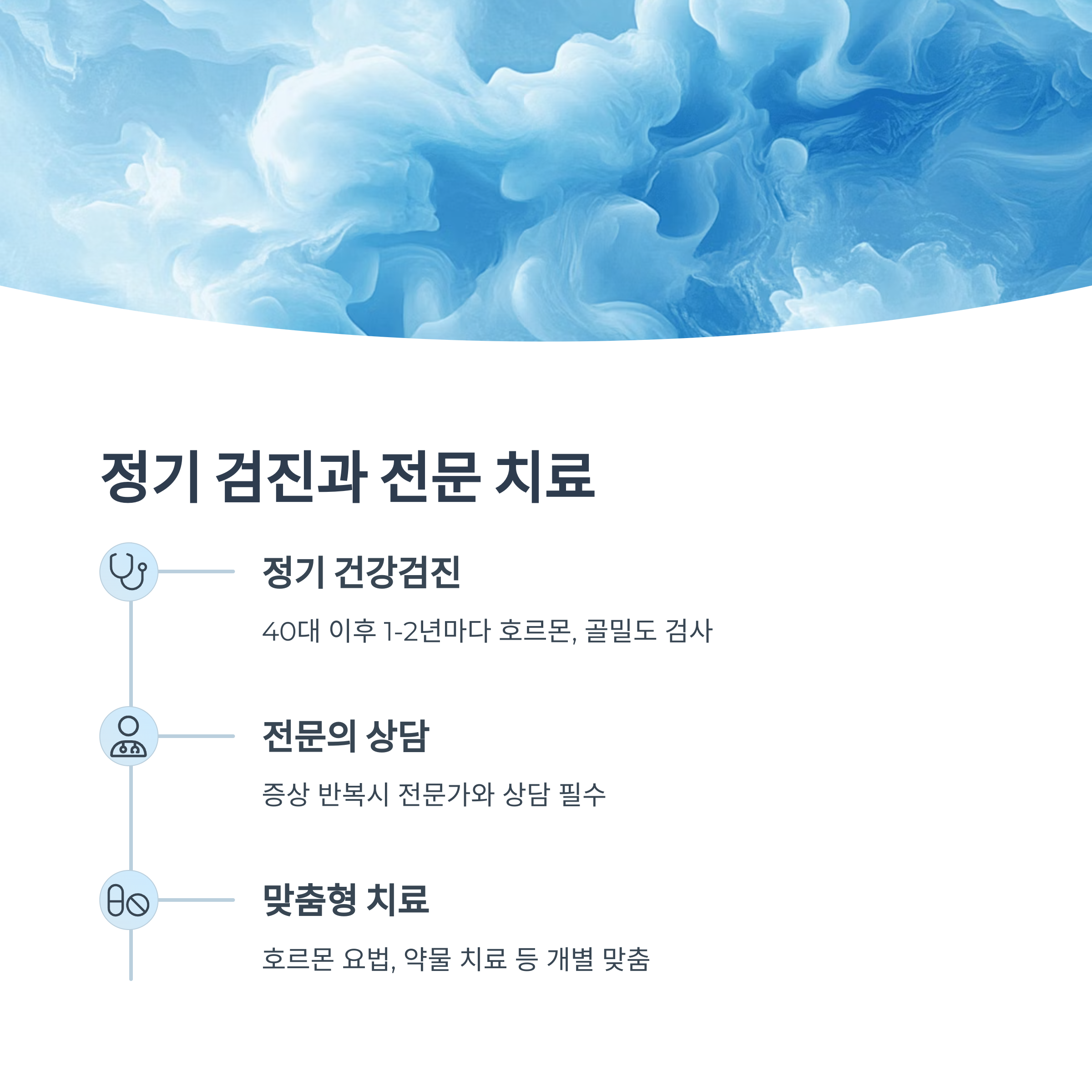 내 몸의 변화를 두려워하지 말고, 전문가와 함께 슬기롭게 관리하세요