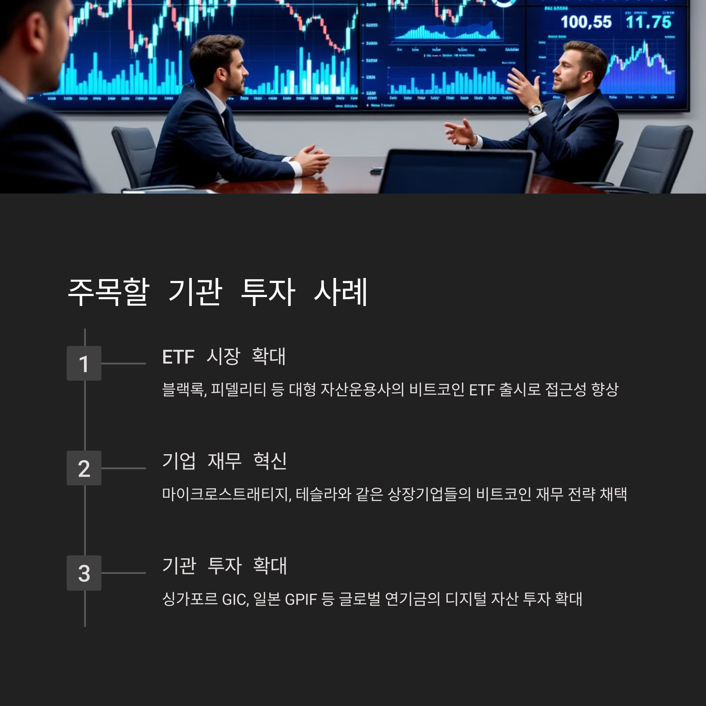 여러분은 기관 투자자의 움직임이 비트코인 시장에 어떤 영향을 미친다고 보시나요?