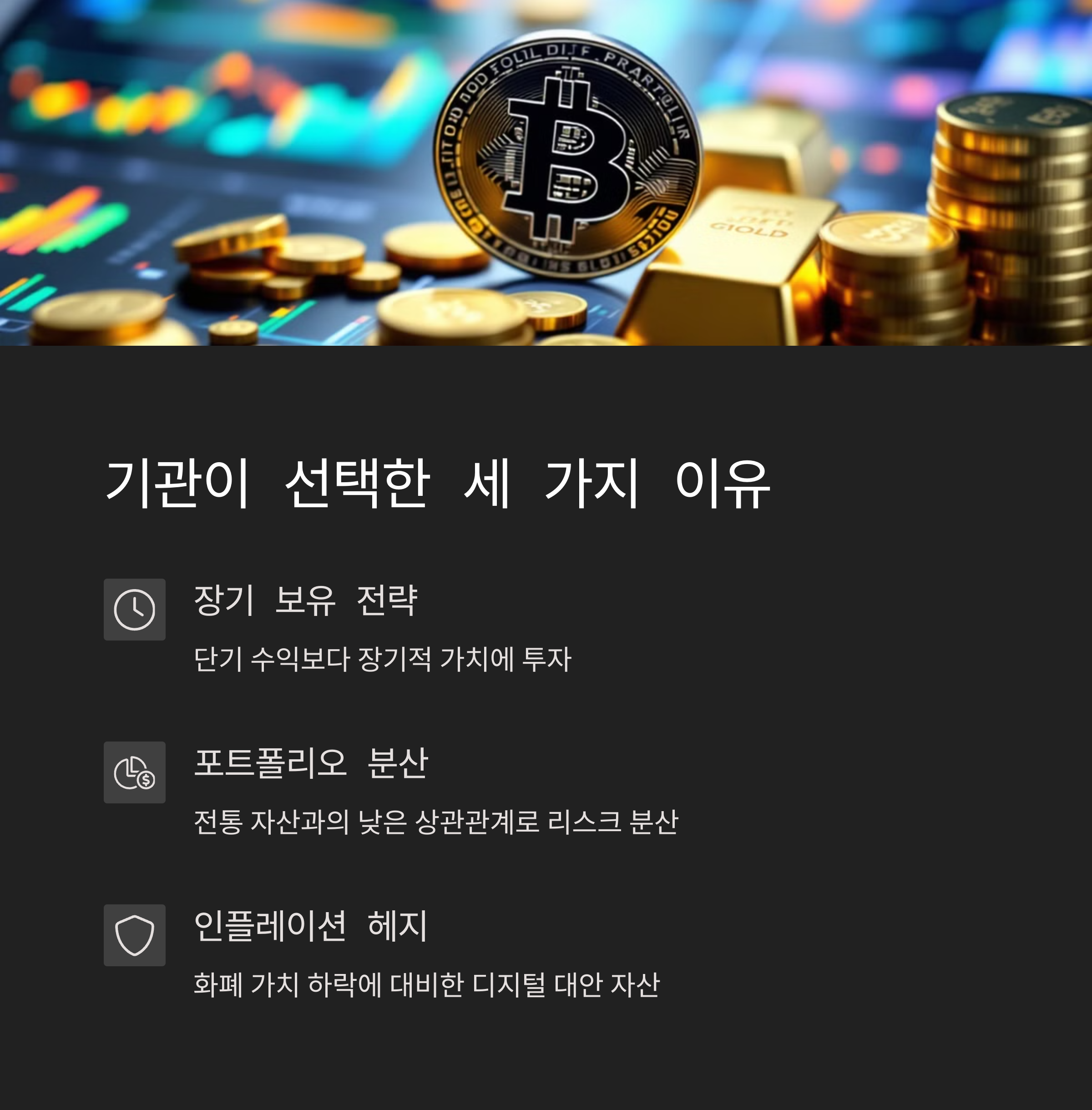 | 글로벌 인플레이션 | 가치 저장 수요 증가 | 장기 보유, 분산 투자 |