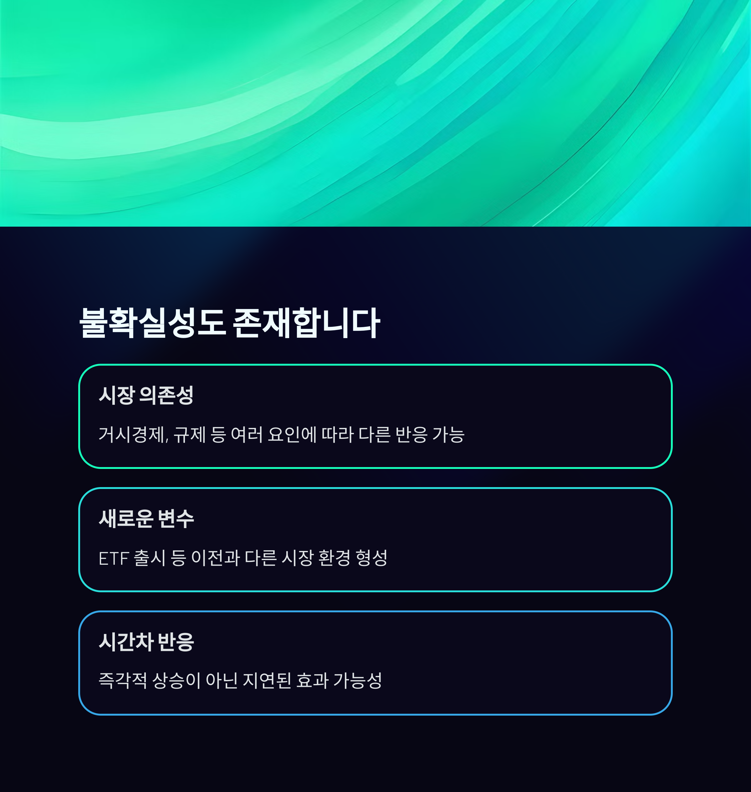 | 반감기 후 | 공급 감소 체감 → 상승 본격화 | 분할 매수로 접근 가능 |