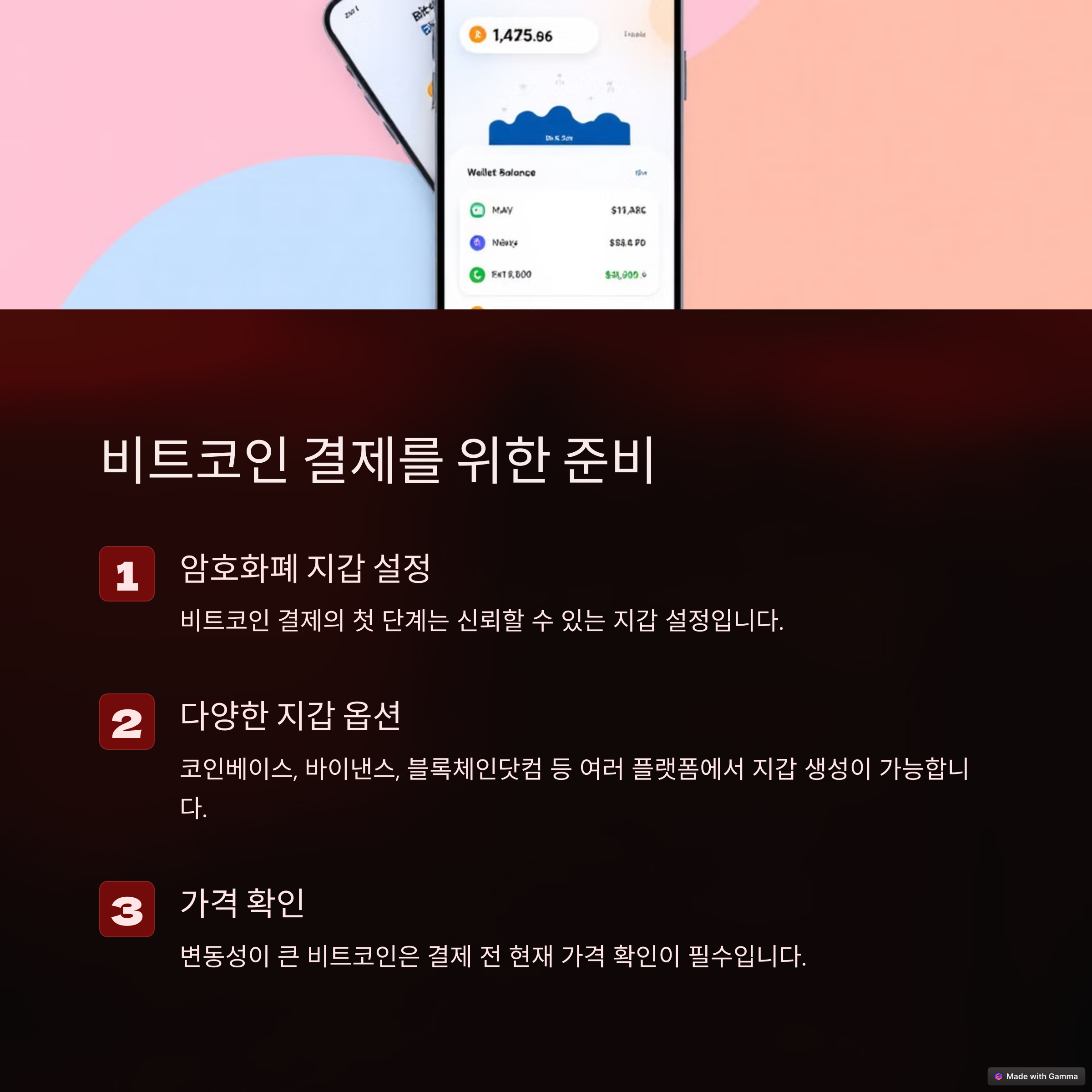 비트코인 결제를 사용하기 위해서는 먼저 비트코인 지갑 앱을 설치해야 합니다. 대표적인 지갑 앱으로는 코인베이스, 바이낸스, 블록체인닷컴 등이 있으며, 이 앱을 통해 비트코인을 보관하고 결제할 수 있습니다. 또한, 일부 결제 서비스는 비자 또는 마스터카드와 연동되어 실물 카드처럼 사용할 수도 있습니다.