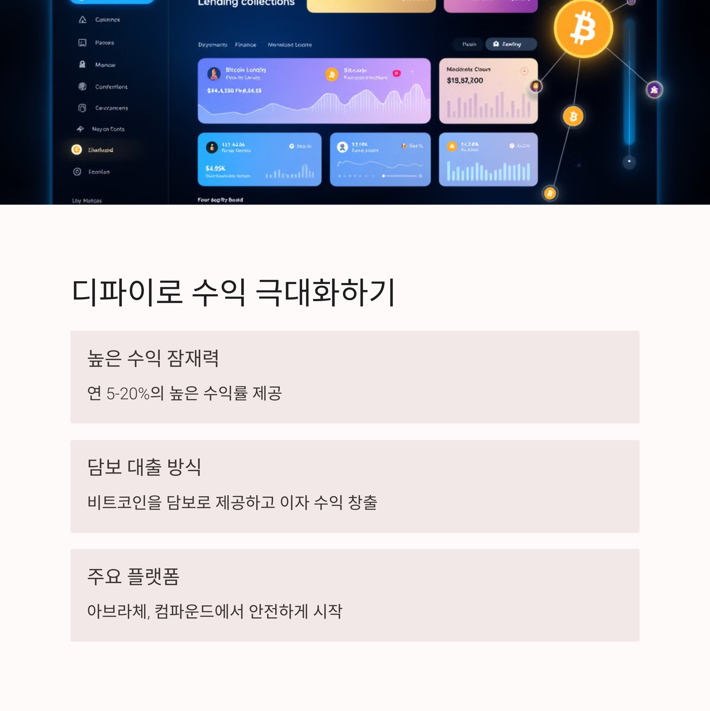 | 비트코인 활용법 | 예치, 대출, 스테이킹 등 다양한 수익 모델 존재 |