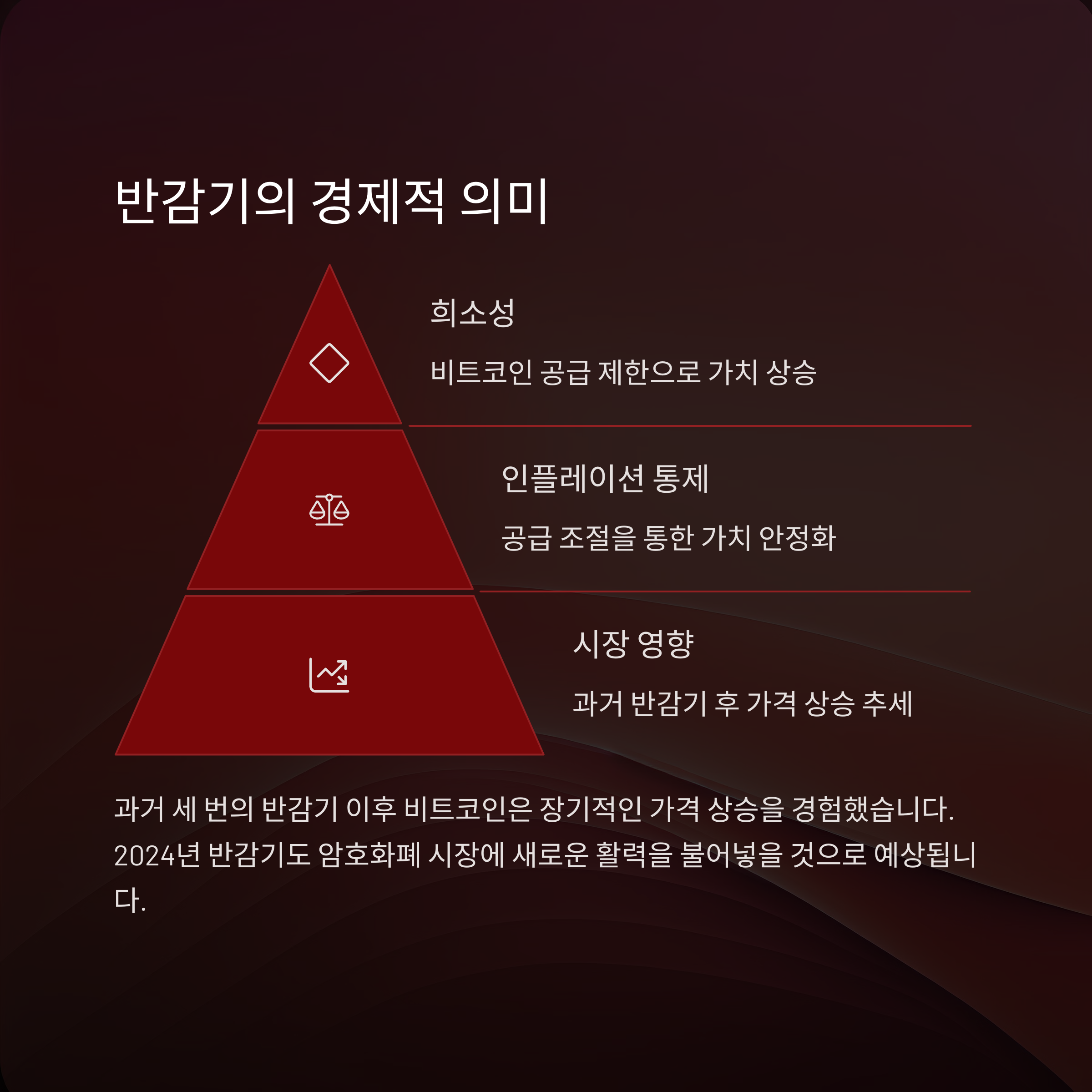 | 반감기 개념 | 채굴 보상이 절반으로 줄어드는 비트코인 공급 조절 메커니즘 |
