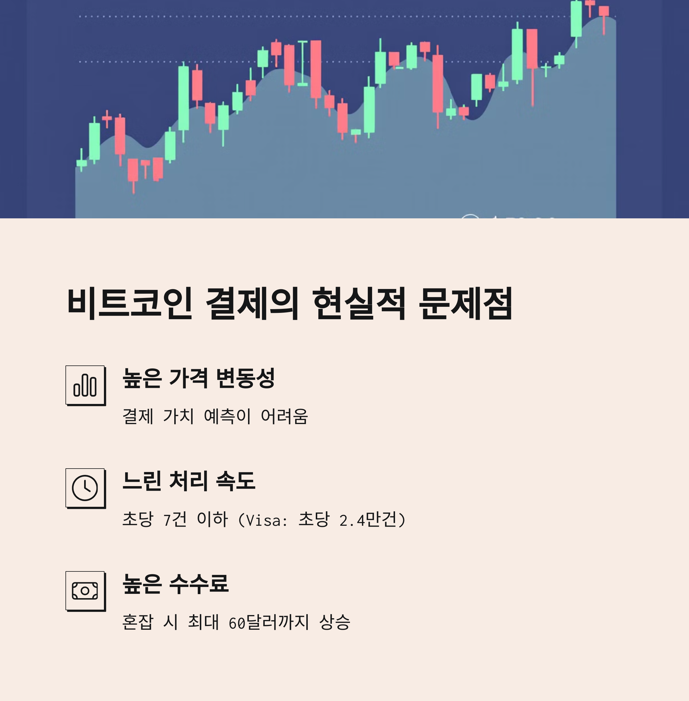 | 남은 과제 | 가격 변동성, 처리 속도, 수수료, 규제 미비 |
