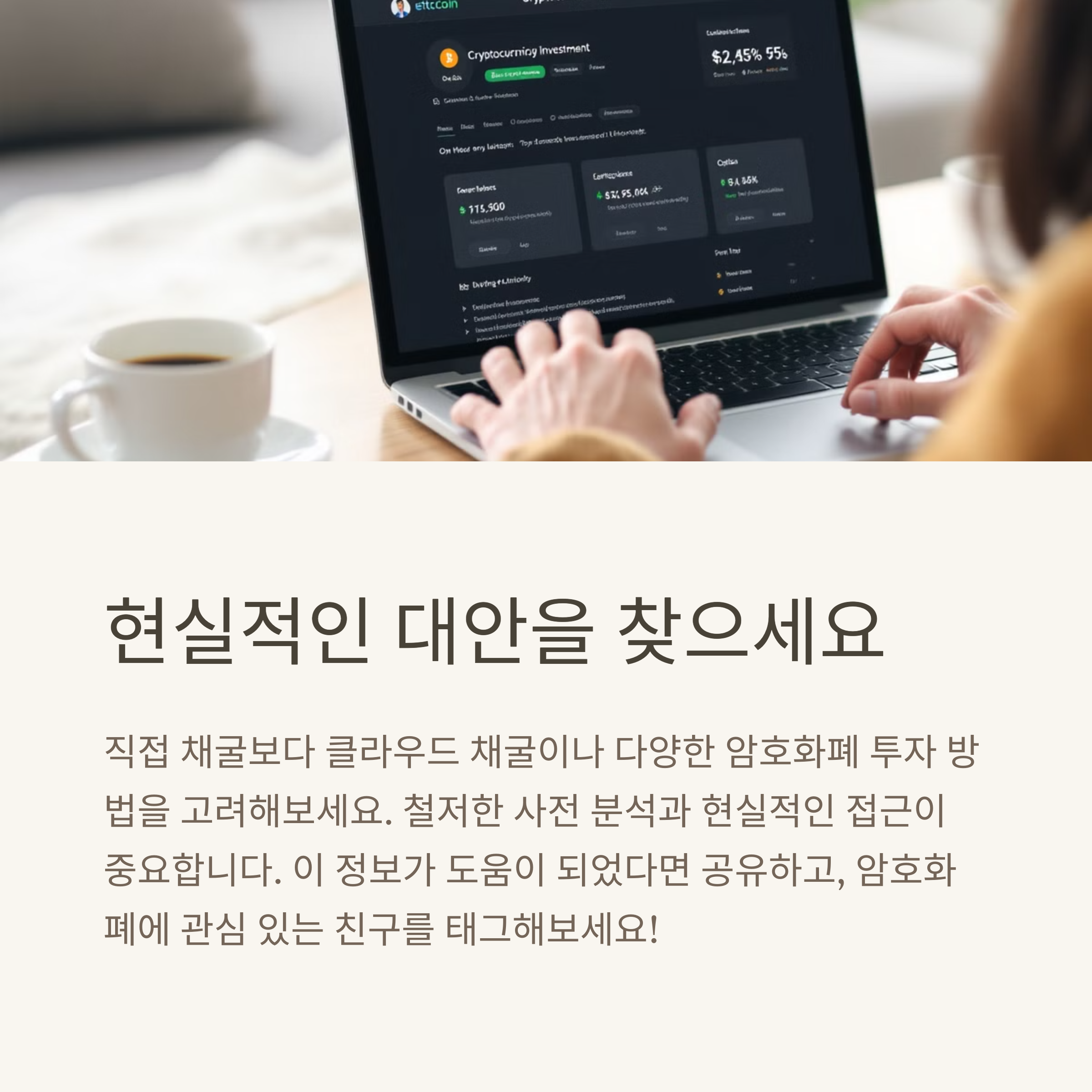장비 세팅 경험, 채굴 풀 추천, 수익 계산 팁 등 개인 채굴에 대한 이야기를 댓글로 나눠주세요!