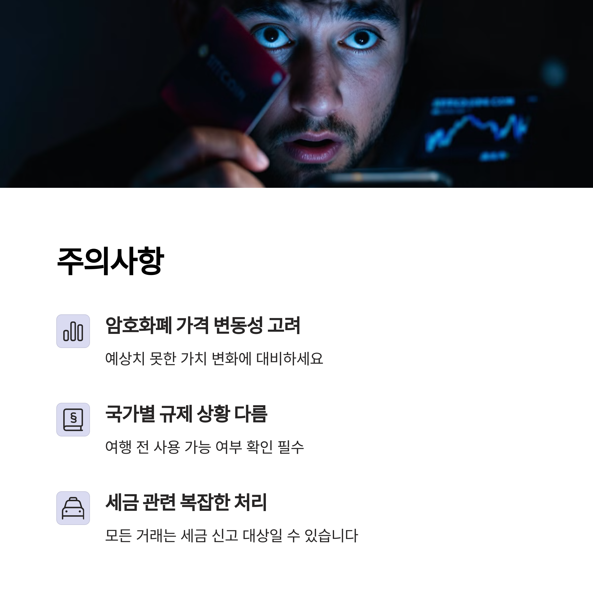 결제 시 실시간으로 BTC가 매도되기 때문에 가격 변동에 따른 손실을 고려해야 합니다. 또한 일부 국가는 세금 신고 또는 카드 사용 제한이 있을 수 있으므로 국가별 규제와 세법도 함께 확인하는 것이 중요합니다.