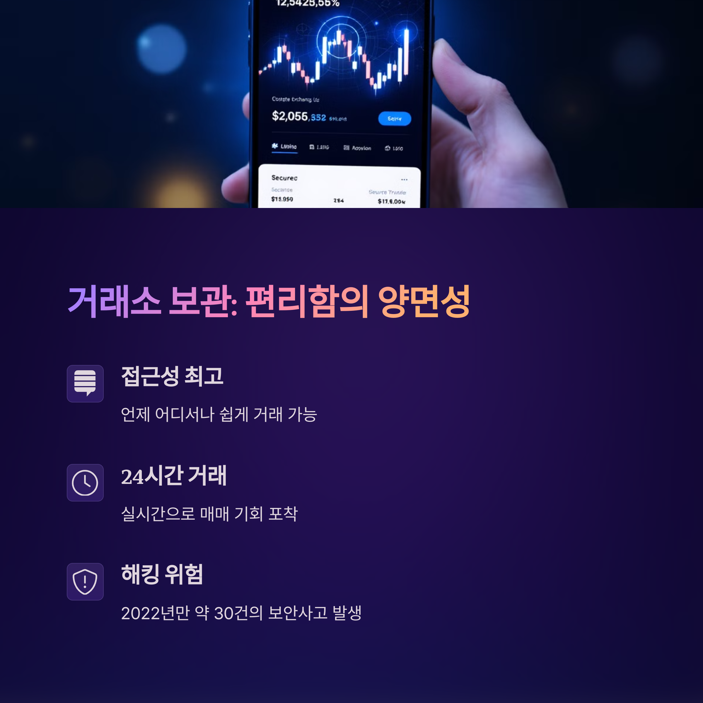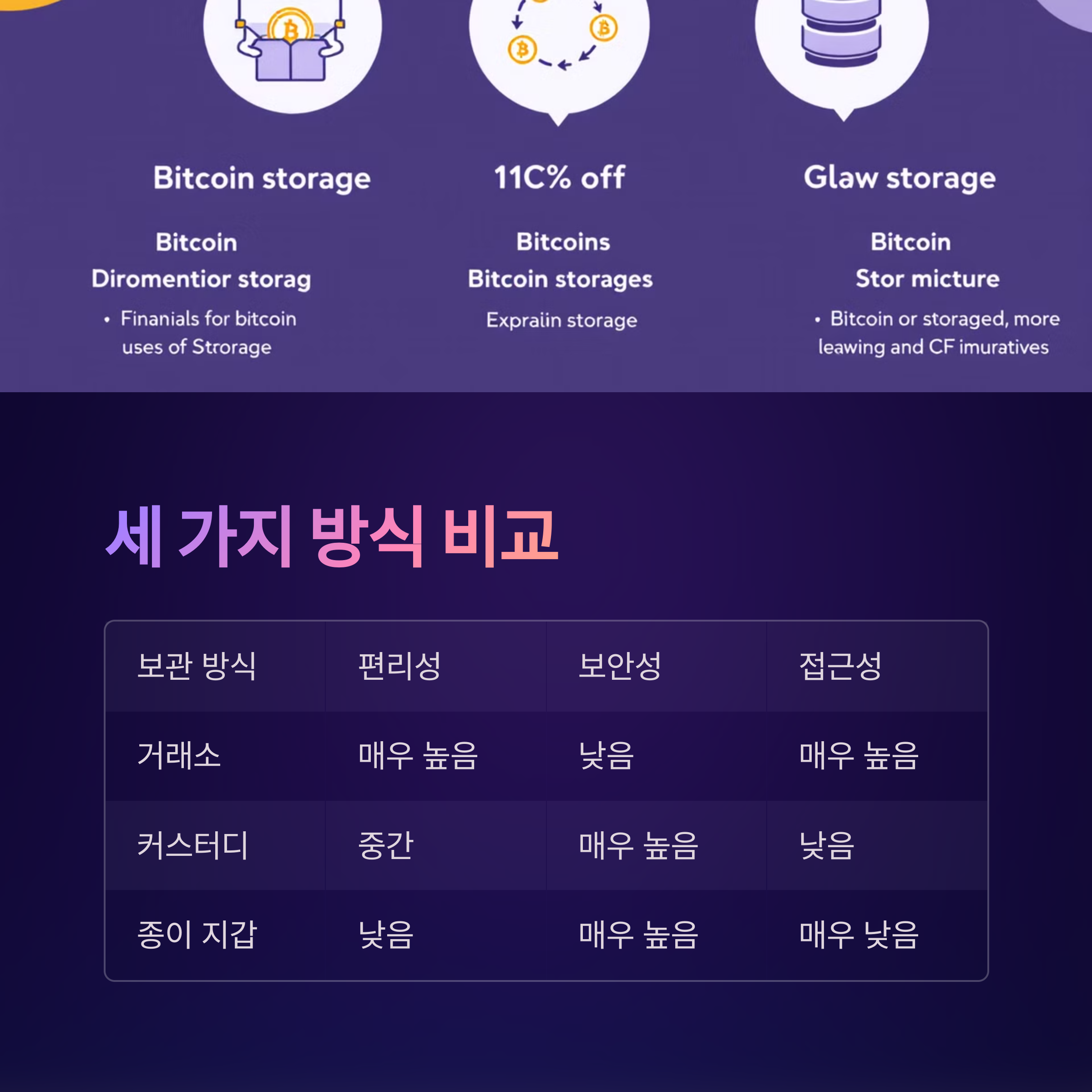 | 핵심 키워드 | 중앙화 거래소, 수탁 서비스, 종이 지갑, 계좌 기반 보관 |