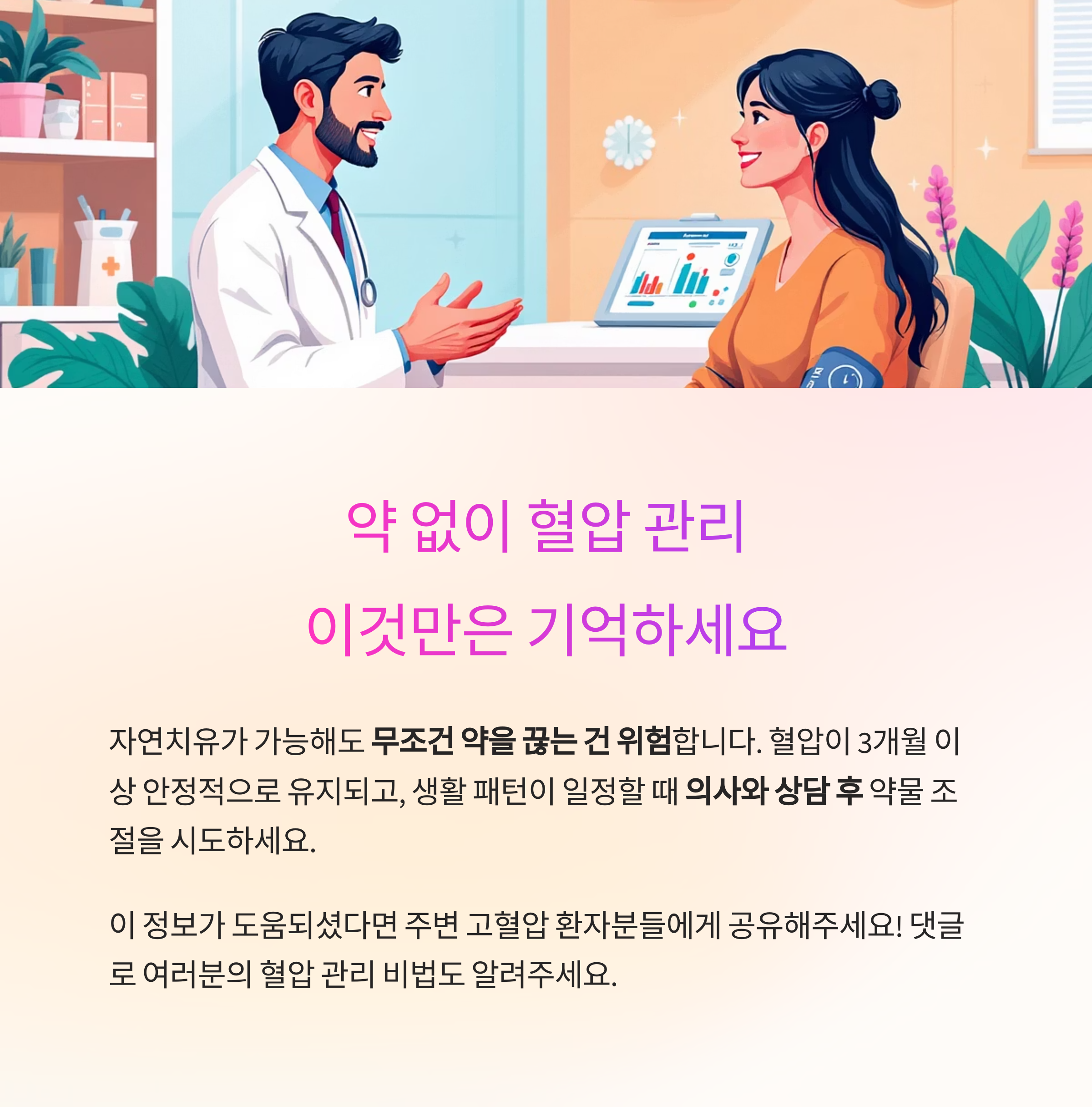 "약 없이 관리할 수 있지만, 전문가 조언 없이는 절대 무리하지 마세요."