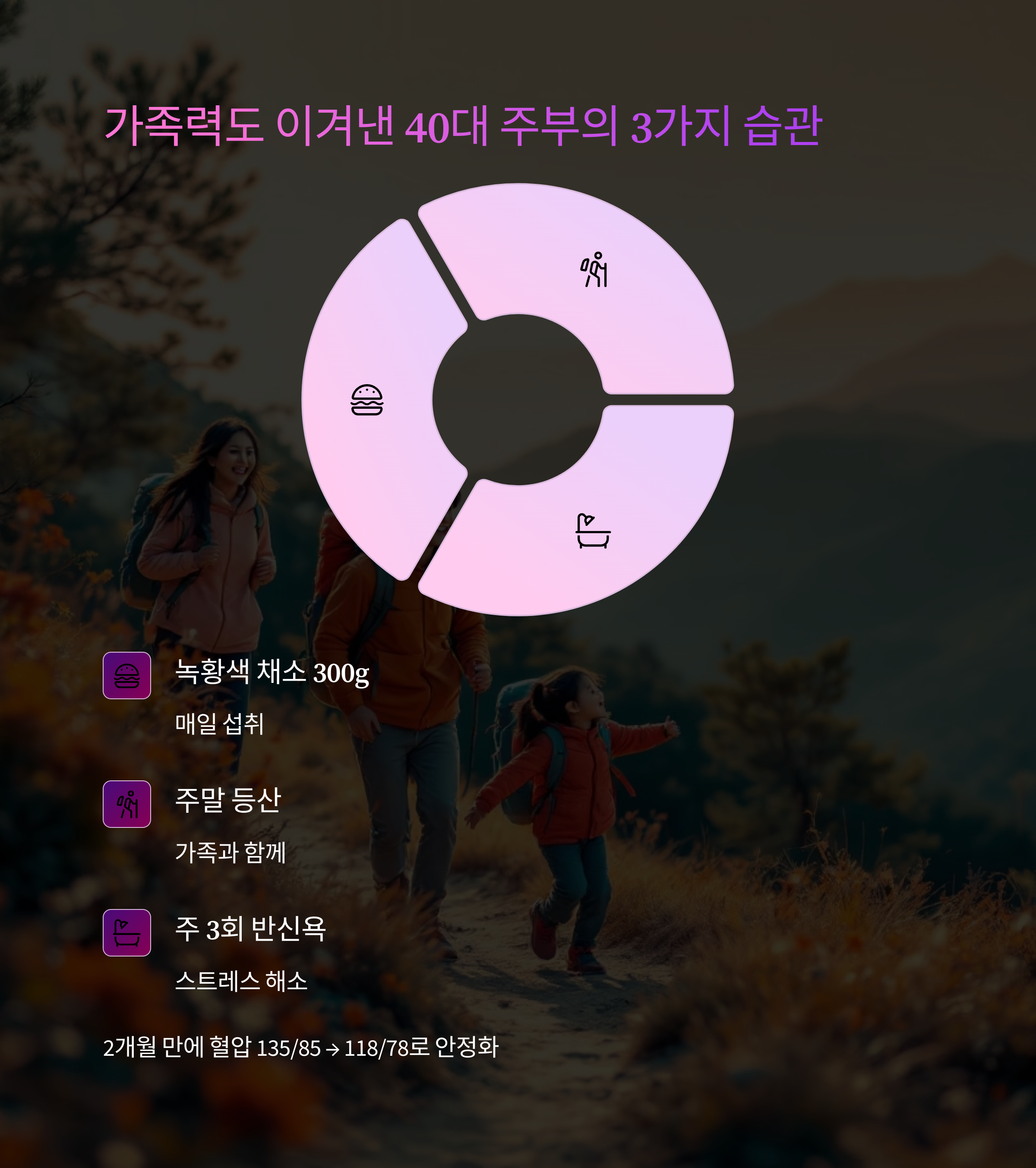 2개월 뒤 혈압은 135/85에서 118/78로 안정됐고,