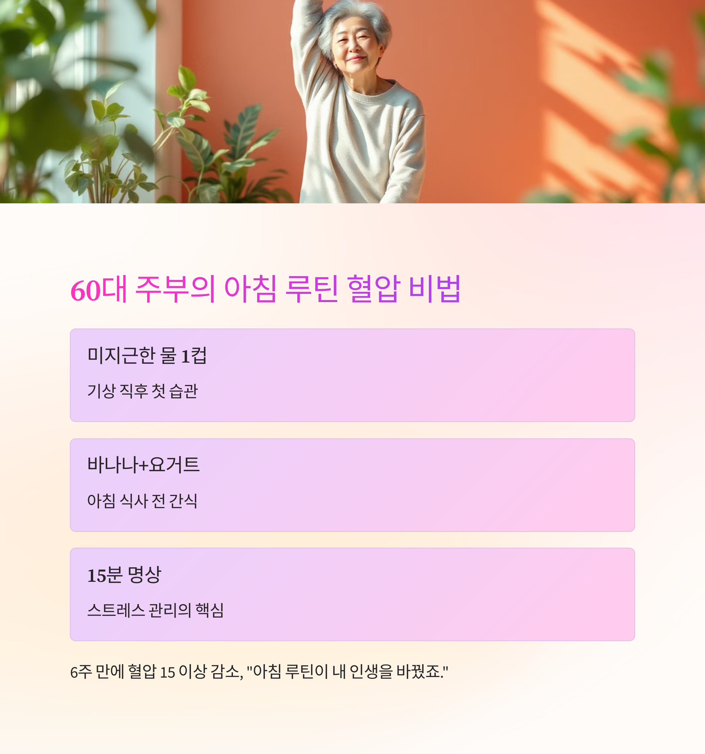 ② 60대 주부, 고혈압에서 탈출한 ‘아침 루틴’